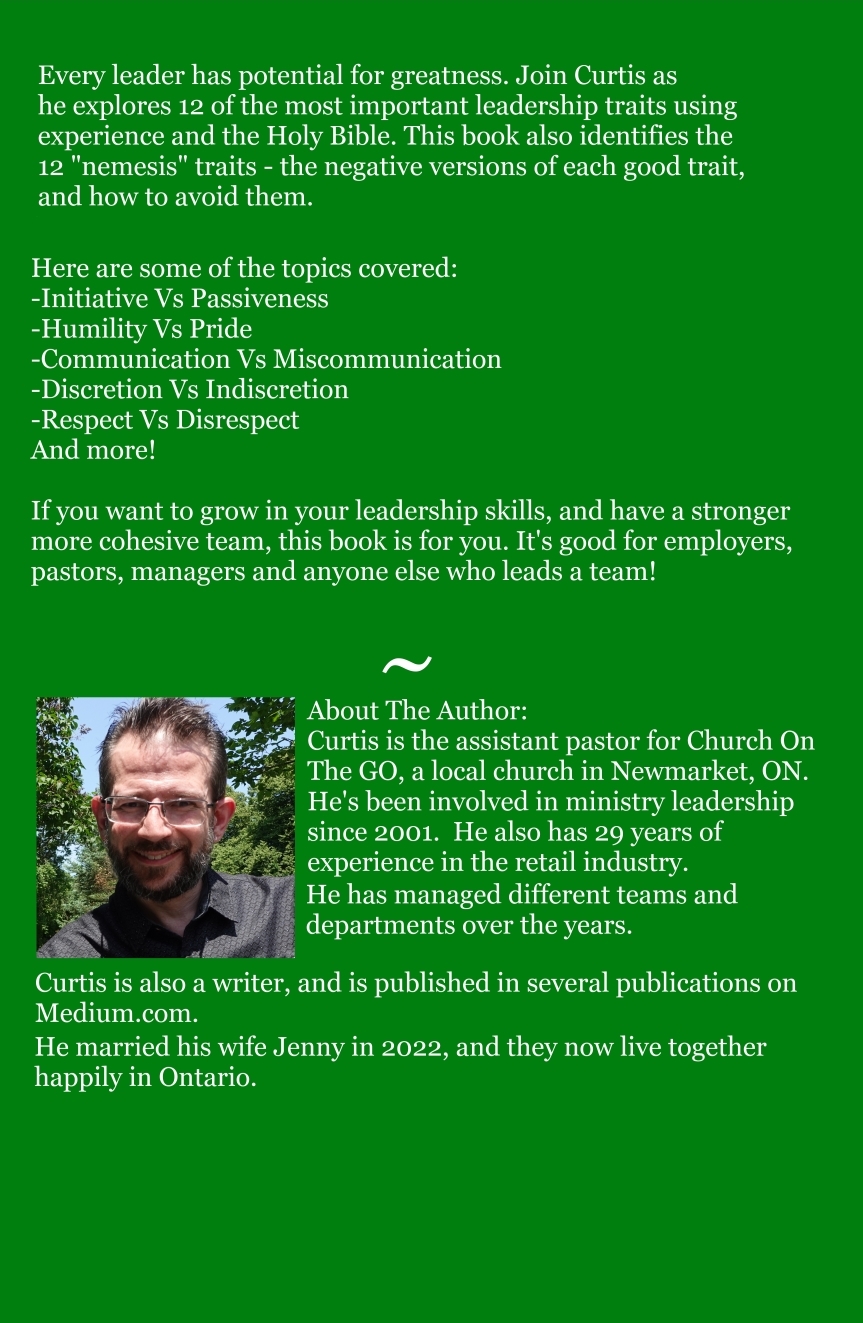 Every leader has potential for greatness. Join Curtis as he explores 12 of the most important leadership traits using experience and the Holy Bible. This book also identifies the 12 "nemesis" traits - the negative versions of each good trait, and how to avoid them.